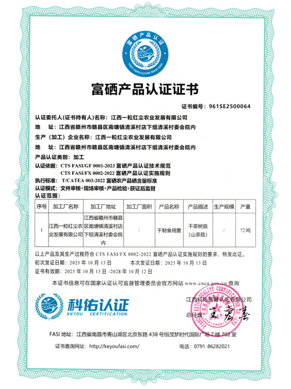 江西一粒紅塵農業發展有限公司是一家總部位于江西省贛縣的現代農業多元型企業,專注于食用菌的研發、種植、深加工貿易研教培、農文旅等全產業鏈發展。公司秉承“健康、綠色、共享、共贏”的核心價值觀,致力于引領鄉村振興之路,旨在成為......